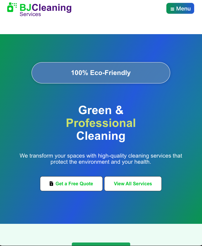 This template for a cleaning agency in Las Vegas blends a modern, minimal aesthetic with a green palette and soft gradients that convey freshness and trust. Designed for companies using 100% eco-friendly products, it prioritizes clear readability, simple navigation, and fast loading.